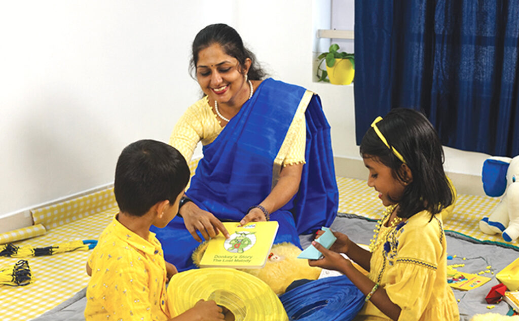 Focus on mother tongue and developing ready-to-study skills Training on visual, listening, language and reading skills, mathematical skills, early manipulative skills, self-help skills, and understanding the concept of position, direction, and time Introduction to Montessori methods, including sensorial, language, mathematical, and social skills